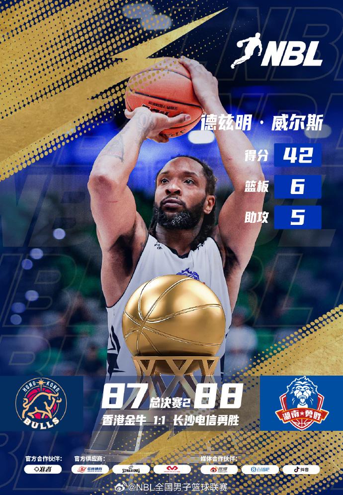 威尔斯42分&罚球绝杀 厄特尔36+6+4断 长沙勇胜1-1香港金牛