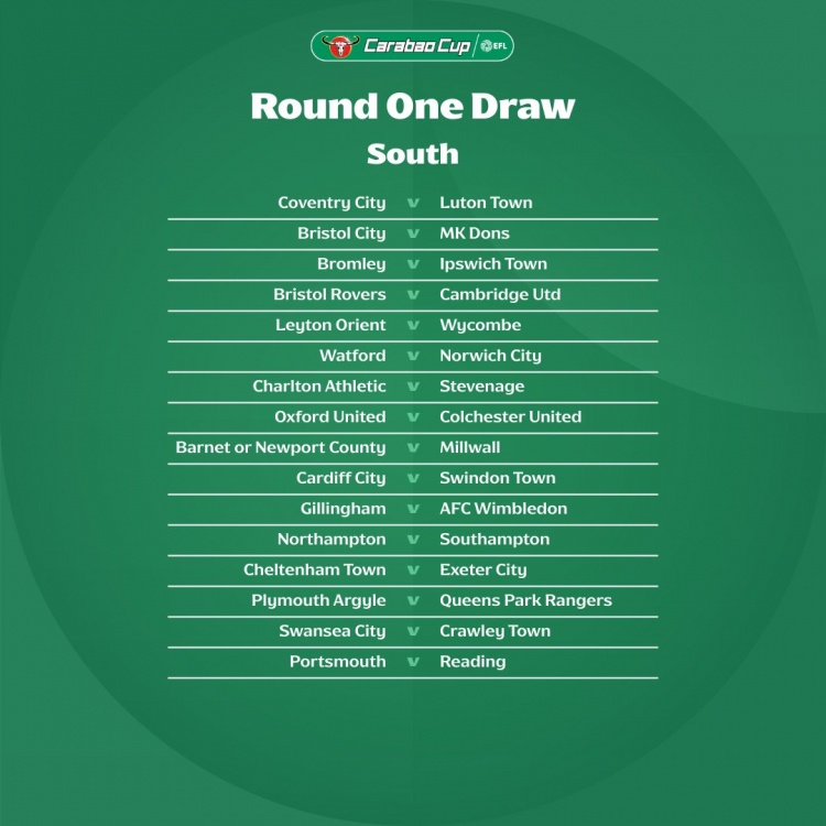 新赛季联赛杯首轮对阵:考文垂vs卢顿 北安普顿vs南安普顿