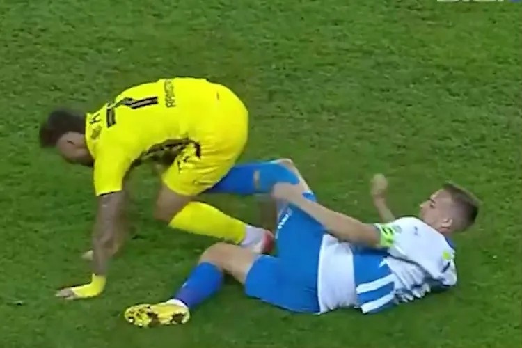 合理吗罗马尼亚球员被蹬踏后猛踹对手私处染红,对手没拿牌